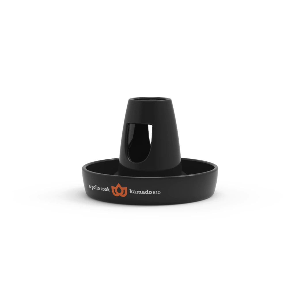 Es un accesorio para apoyar el pollo, con un plato recolector de jugos. Esto hace que los mismos no caigan al fuego y no haya humo. Además, se puede agregar en el plato ajos, gajos de limón, naranja o aromáticas. Cada 20' se pincela el pollo con estos jugos, logrando pollos tiernos, rosados y muy sabrosos!