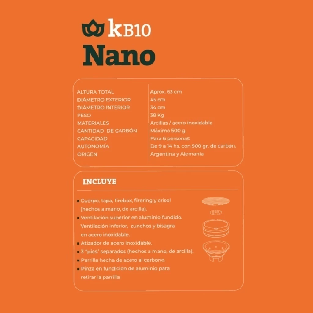 Cuerpo, tapa, firebox, firering y crisol están hechos a mano de arcilla